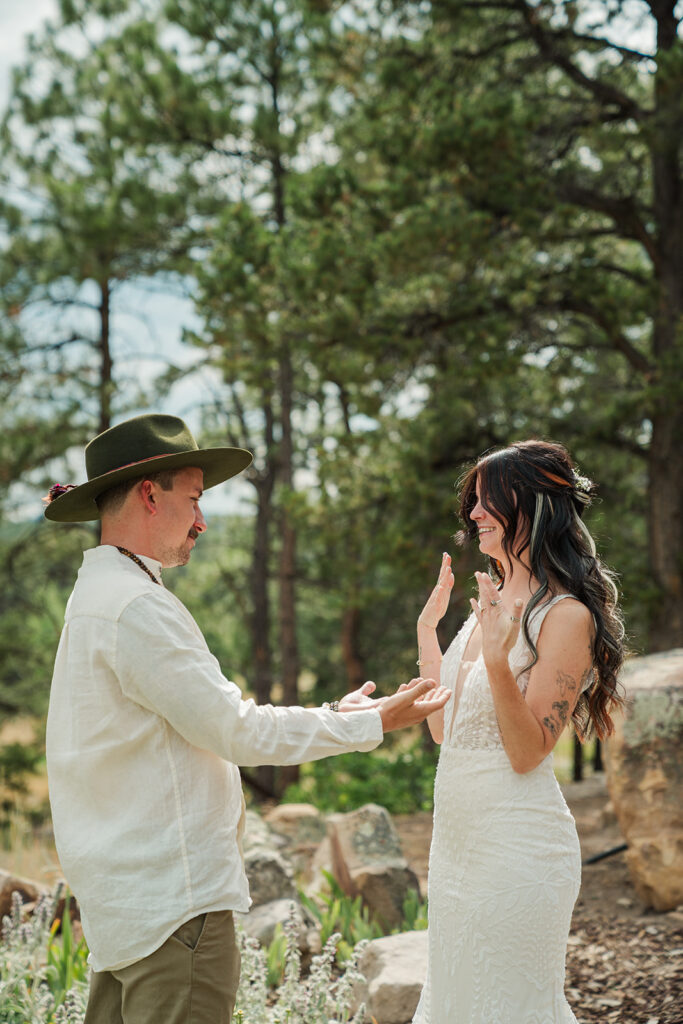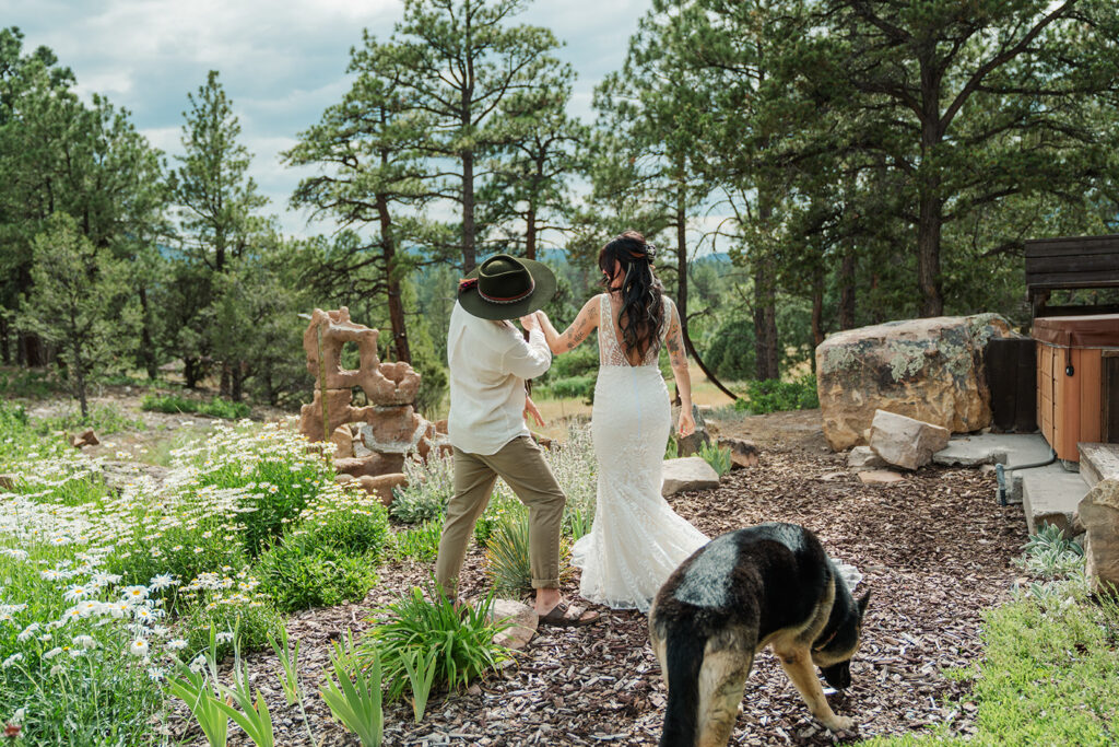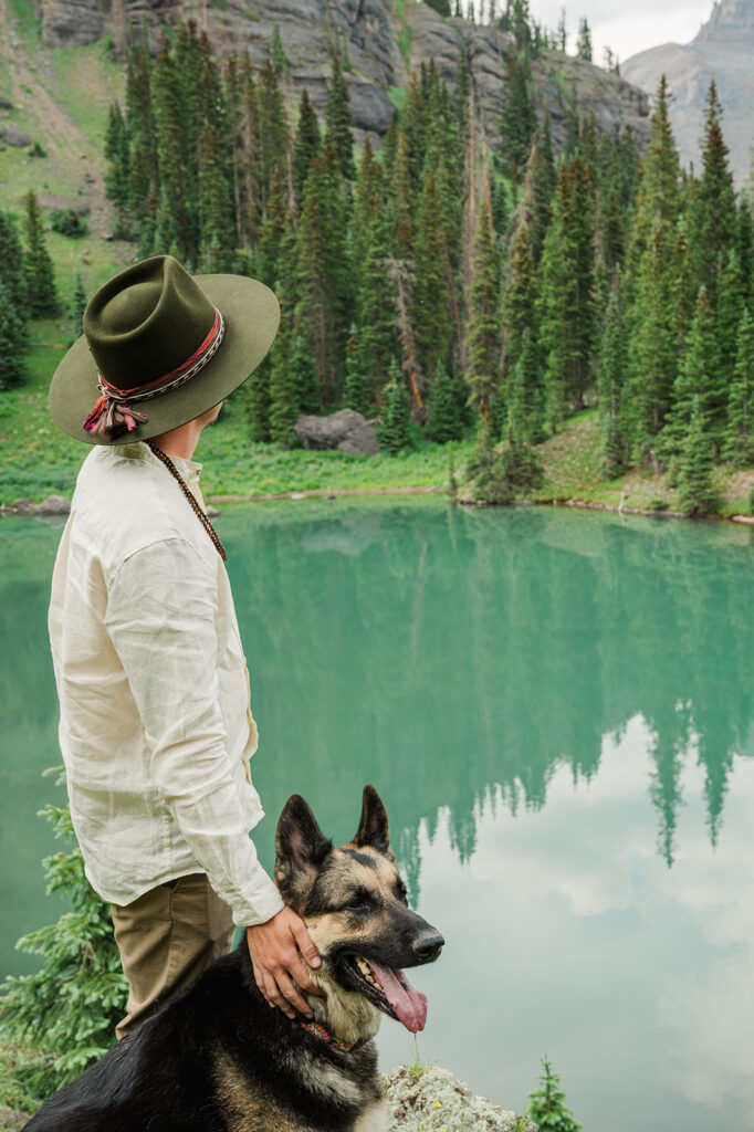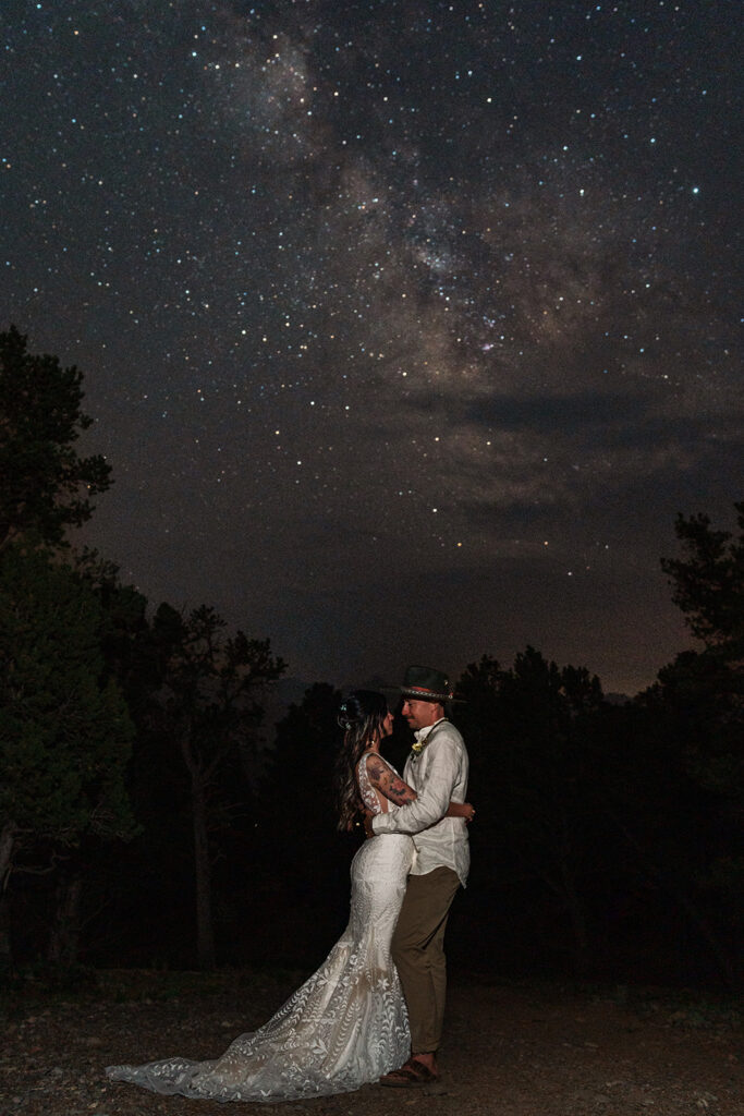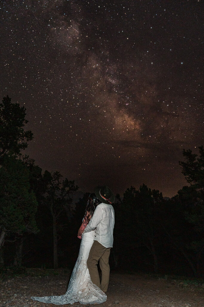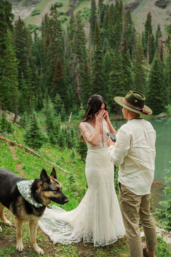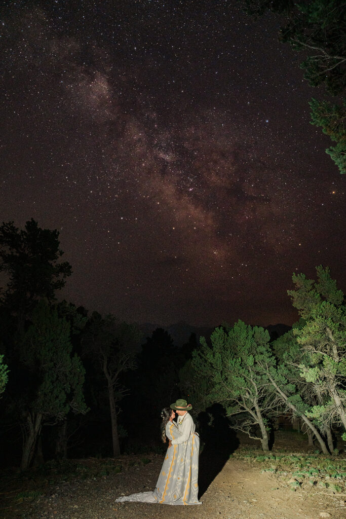 We started their day at a super cute cabin with mountain views. Sarrah and Clay got ready separately and then did a first look with views of Mount Sneffles. Their dog, Leia, was (of course) a part of everything from the first look to the Milky Way.