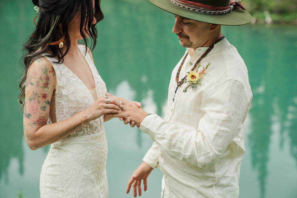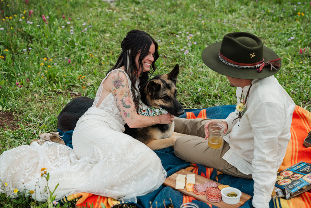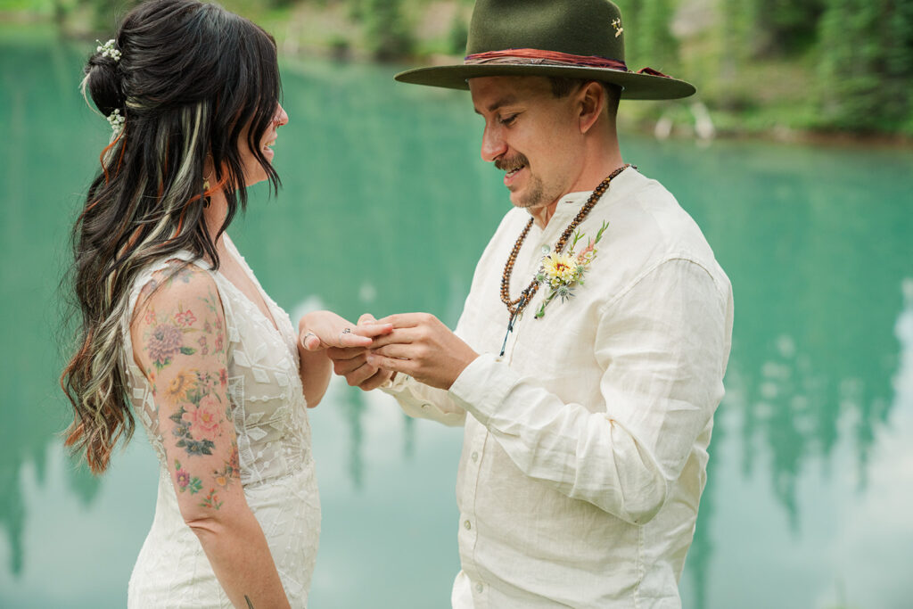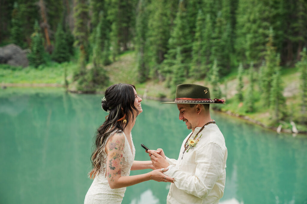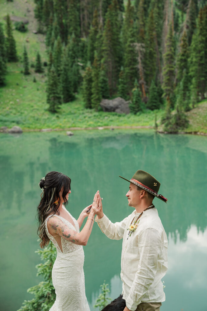 Sarrah and Clay picked a spot at the first lake (yes, the water really was that color), to exchange vows. They perfect- personal and meaningful. After taking in the scenery, we headed up to our second lake where they celebrated marriage with a picnic.