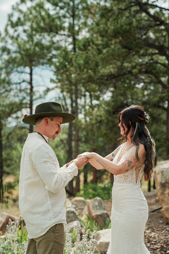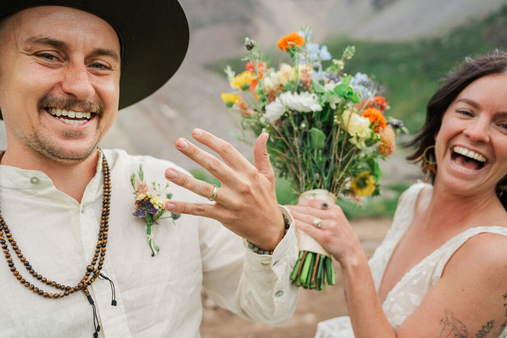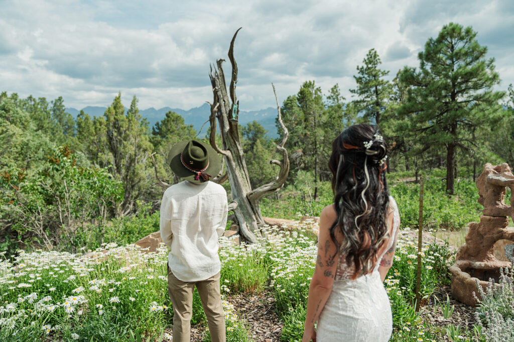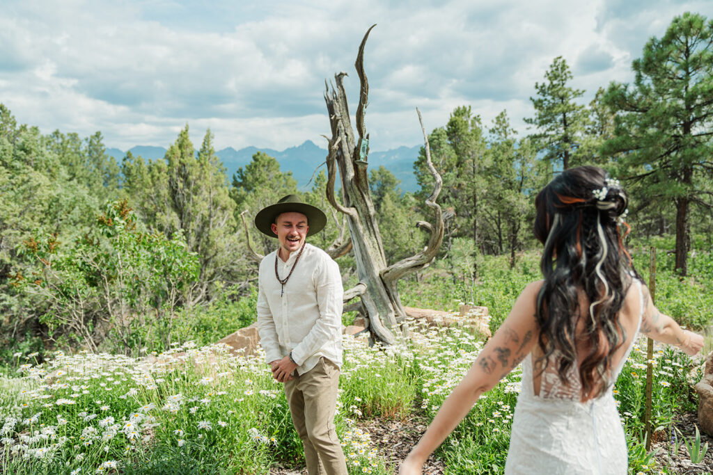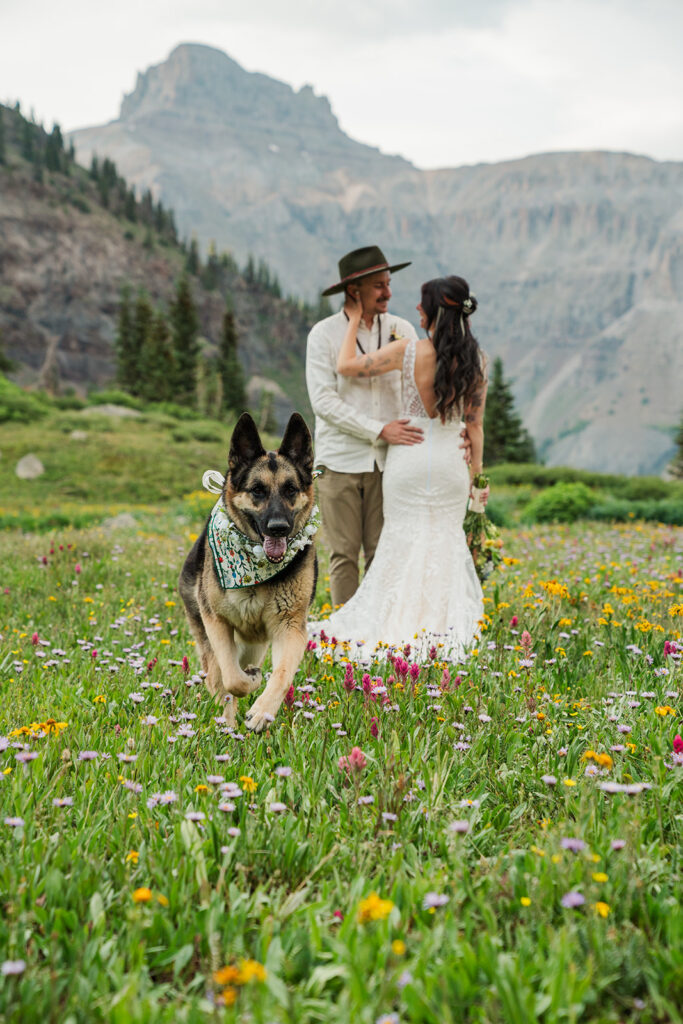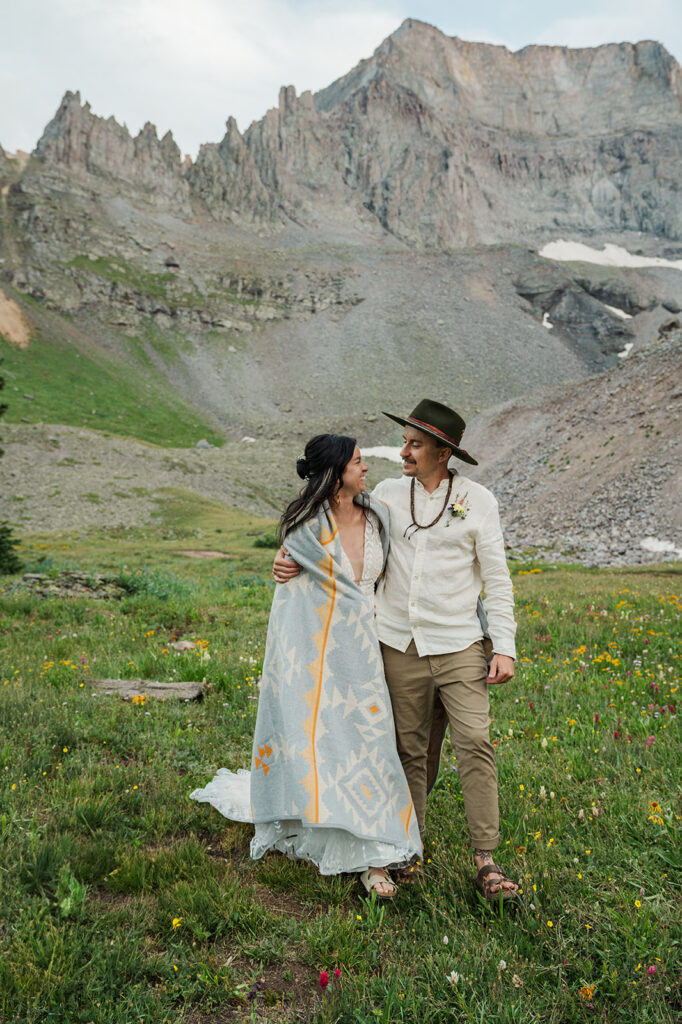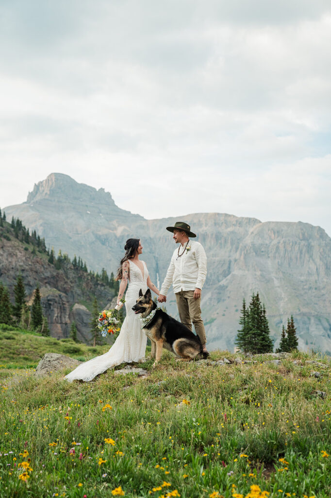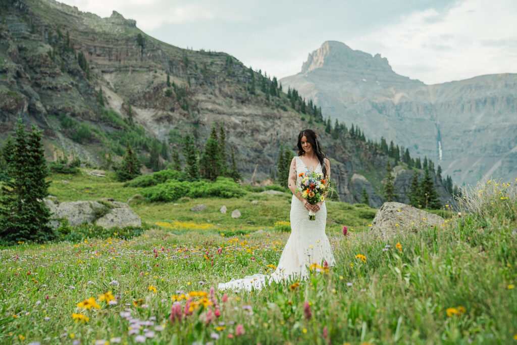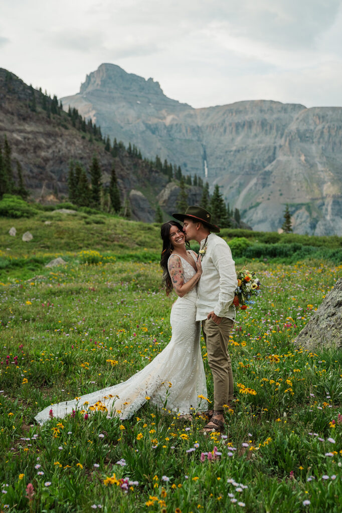 A summer magic day in Ouray, Colorado. Big Mountain views, fields of wildflowers in all the brightest colors, and privacy. Those things are hard to come by, especially in Colorado in July, but Sarrah and Clay found them. They wanted to prioritize their date around the new moon, and it just so happened to fall on the perfect day for wildflowers.