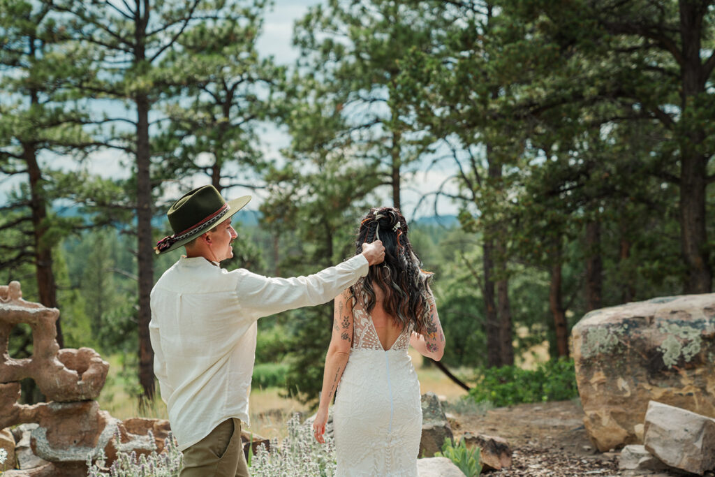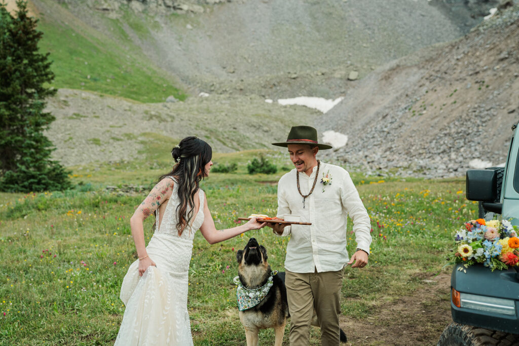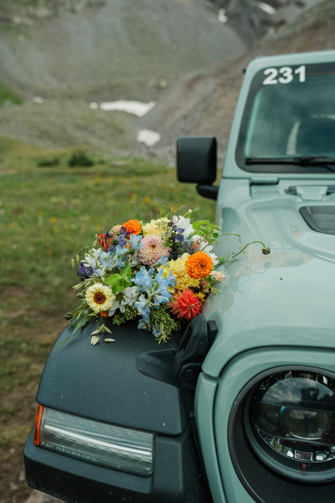 One of the best things about off roading for your Colorado elopement day is the ability to get places less strenuously and more quickly than hiking! We were able to visit two alpine lakes and a meadow filled with wildflowers.